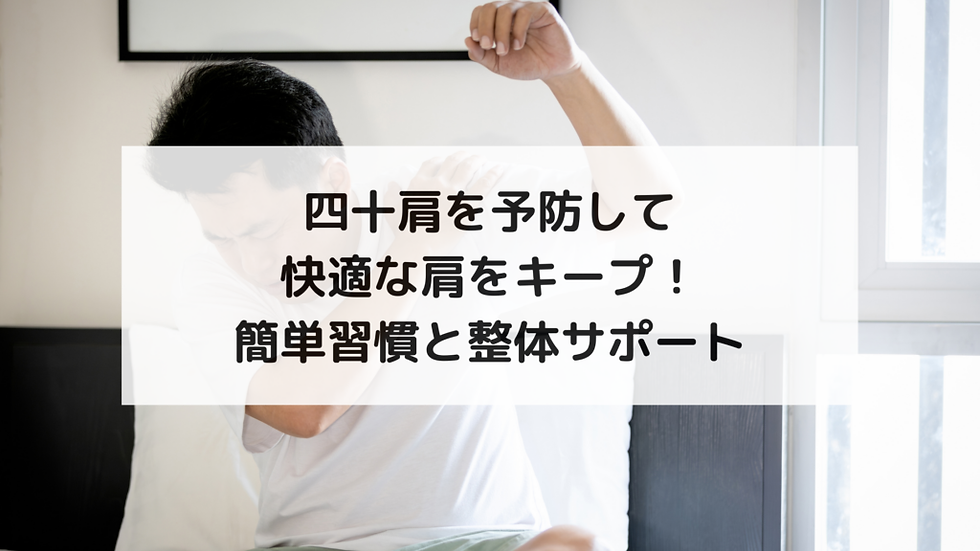 四十肩は年齢とともに発症リスクが高まりますが、早めに対策を習慣化することで、肩の快適さを長く維持できます。日常生活の工夫と整体サポートを組み合わせ、肩の健康をしっかり守りましょう。